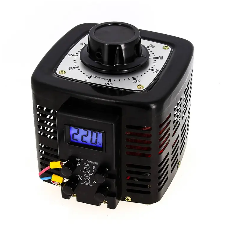 ЛАТР SUNTEK позволяет изменять выходное напряжение от 0 Вольт до 300 Вольт с точностью до 1 Вольта.