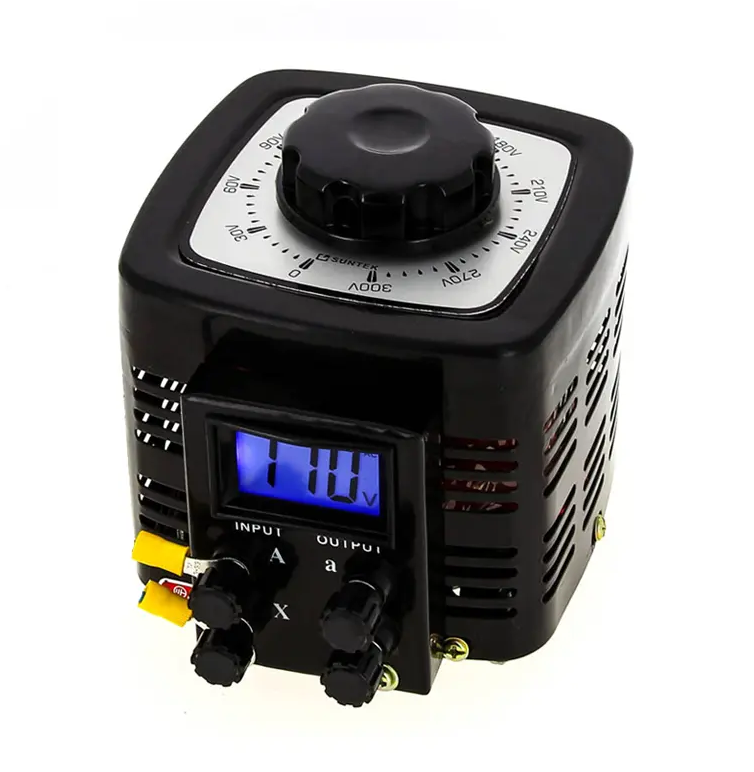 ЛАТР (лабораторный автотрансформатор) производства SUNTEK отличается отображением показаний выходного напряжения на Жидкокристаллическом (ЖК) табло ( информативно и точно), плавным ходом ручки-регулятора, удобным креплением входных и выходных проводов, качеством сборки. ЛАТР SUNTEK позволяет изменять выходное напряжение от 0 Вольт до 300 Вольт с точностью до 1 Вольта, при входном напряжении 220 Вольт.