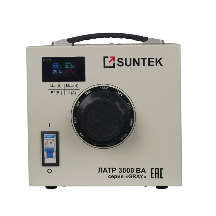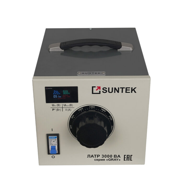 SUNTEK GRAY 3000 ВА — лабораторный автотрансформатор для плавной регулировки напряжения от 0 до 300 В под нагрузкой без обрыва цепи.