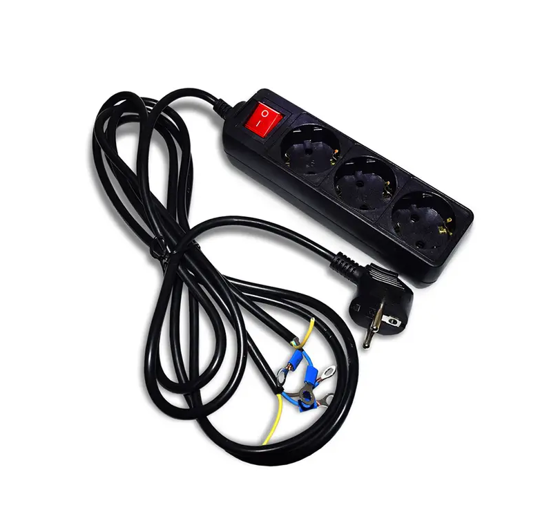 Комплект для подключения ЛАТРа в сеть. В него входят: Провод 1,5 метра с вилкой и клеммами для ЛАТРа, Провод 1,5 метра с розеткой (3 гнезда) и клеммами для ЛАТРа.